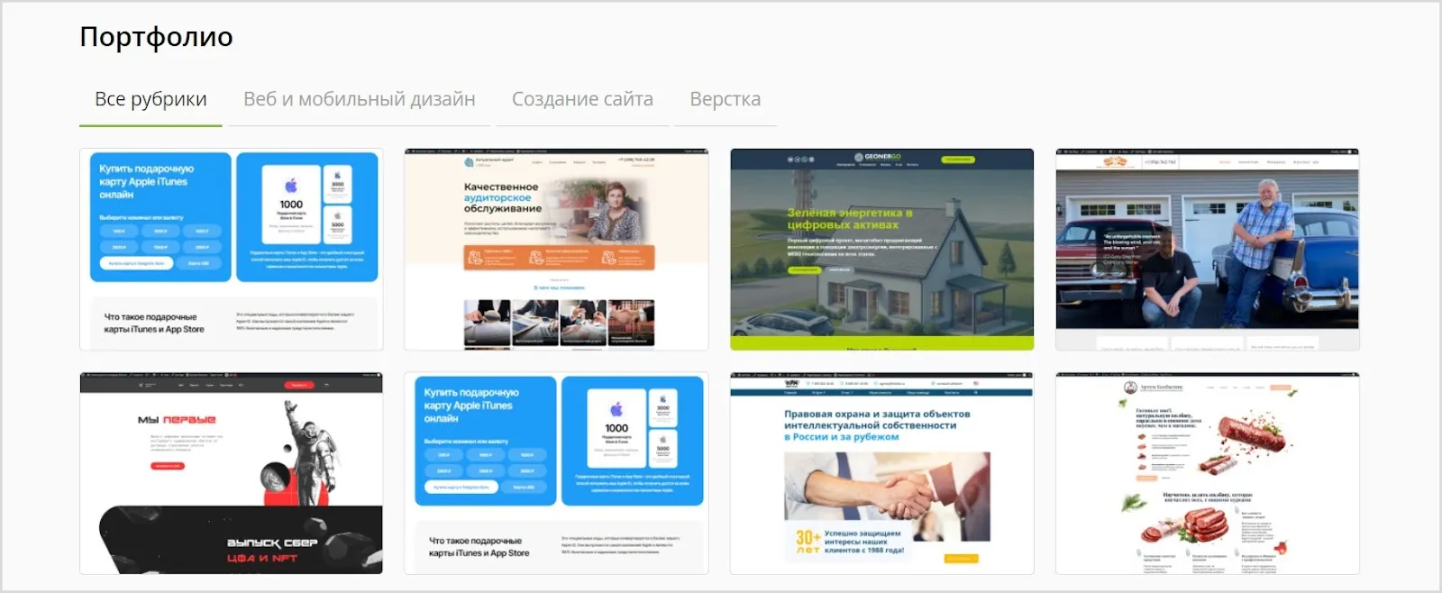 | Кейсы проектов | Подробные описания выполненных работ с результатами и ссылками․ |